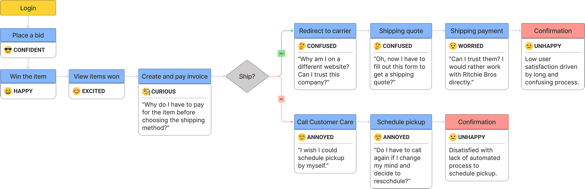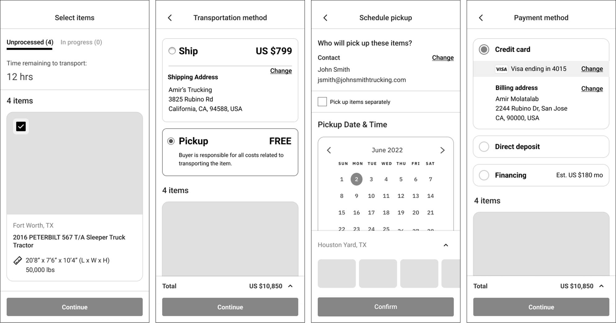 Ritchie Bros. is the world’s largest marketplace for buying and selling industrial equipment, supporting both online and onsite transactions. While the platform enabled successful auctions and purchases, transportation and delivery were handled outside the core checkout flow, creating friction and uncertainty for buyers purchasing large equipment.